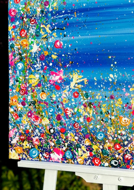 This beautiful painting comes with a striking message of opportunity and hope; peering through charming wildflowers and out into the vast ocean beyond the horizon, where opportunities can be waiting and are endless.